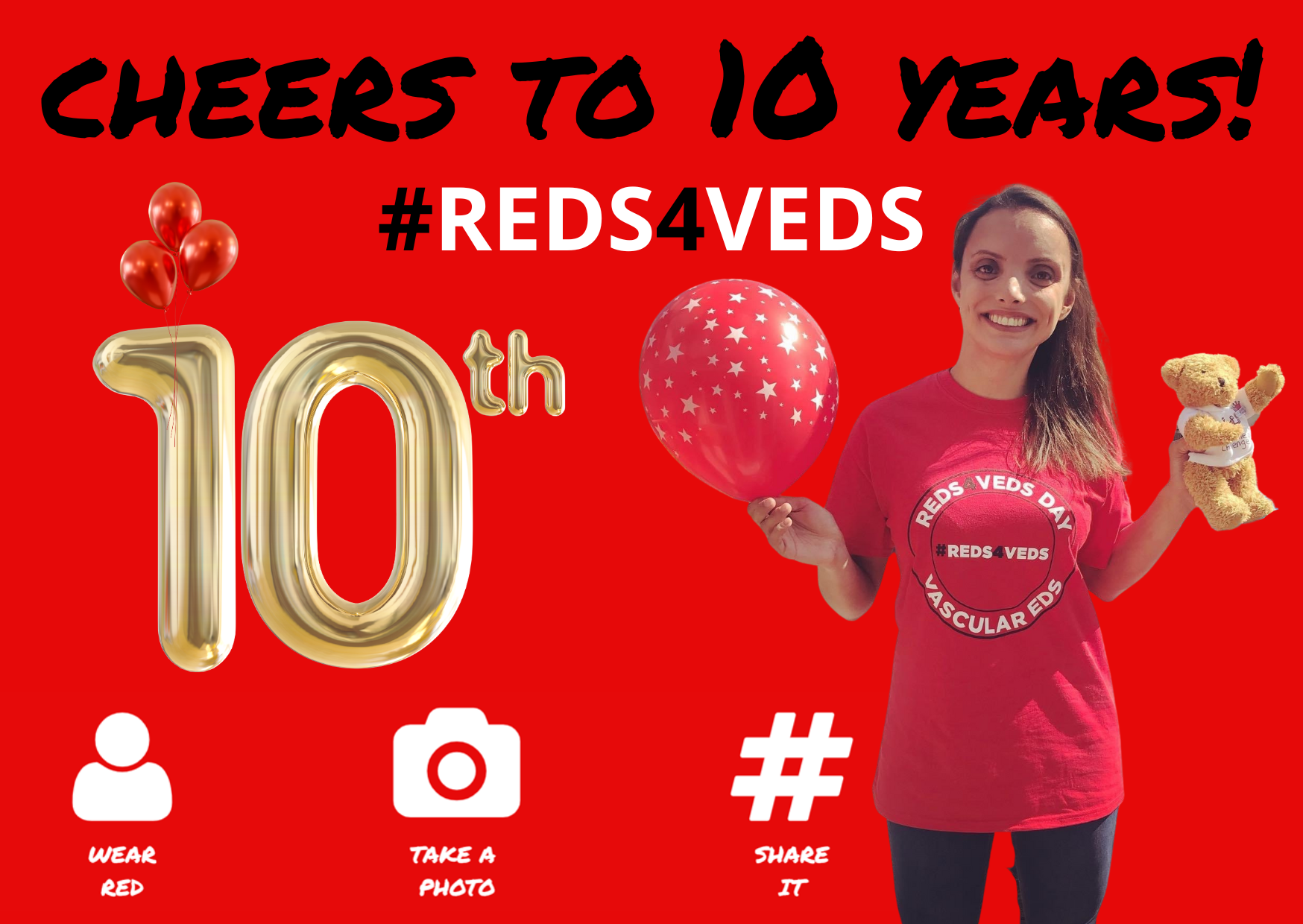 REDS4VEDS is a global campaign hosted by Annabelle's Challenge and takes place on the third Friday of May each year. The aim of the campaign is to help raise the profile of vascular Ehlers-Danlos Syndrome (vascular EDS), a rare life-threatening genetic disorder.